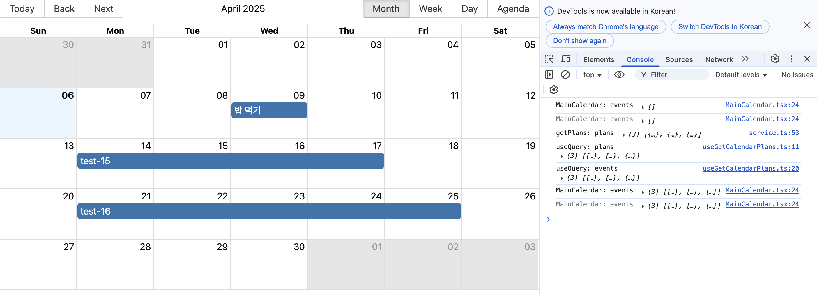 // plans ๋ฐ์ดํฐ ๊ฐ์ ธ์ค๊ธฐ - calendar ์ฌ์ฉ