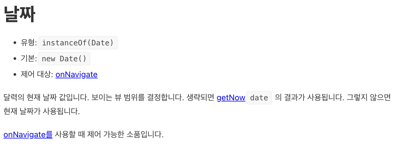 ๊ณต์ ๋ฌธ์์์๋ onNavigate์ date๋ฅผ ๋ค์๊ณผ ๊ฐ์ด ์ค๋ช ํ๊ณ ์๋ค.