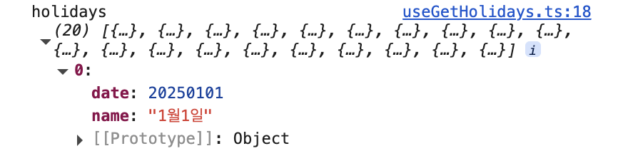 const { data: holidays } = useGetHolidays(String(calendarYear)); // useQuery ์ปค์คํ