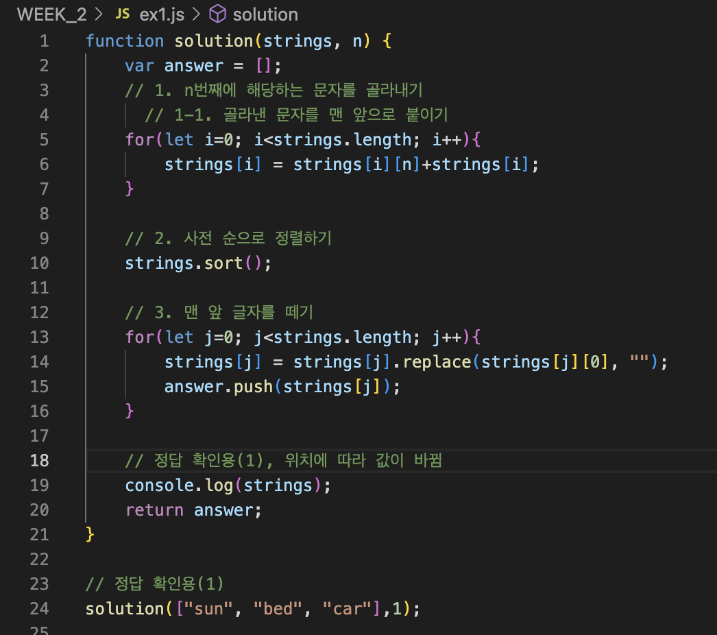 ๋ฅผ ๋ณด๋ฉด ์ฃผ์ ์ฒ๋ฆฌ ๋ '์ ๋ต ํ์ธ์ฉ(1)' ๋ ์ค์ด ํจ์ ๋ด ์ธ๋ก ์๋ ๊ฒ์ ํ์ธ ํ ์ ์๋ค.