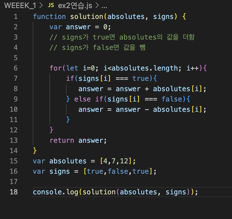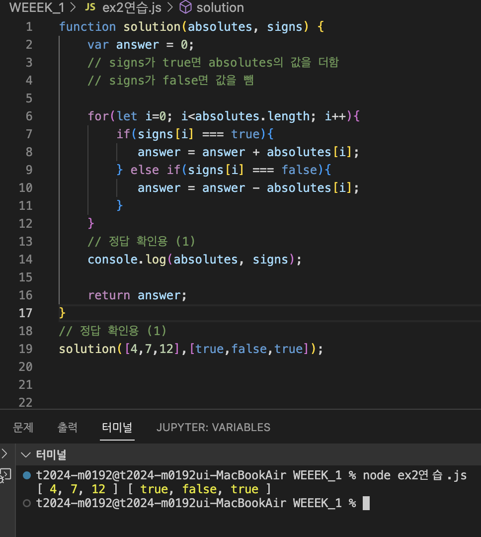 ๊ฐ์ด for๋ฌธ์ ๊ฑฐ์ณ์ ๊ณ์ฐ๋์ด์ผ ํ๋๋ฐ, ๋จ์ง solution์ ๊ฐ์ console.log์ ์ ๋ ฅํ ๊ฐ๋ง์ด ๋์๋ค.
